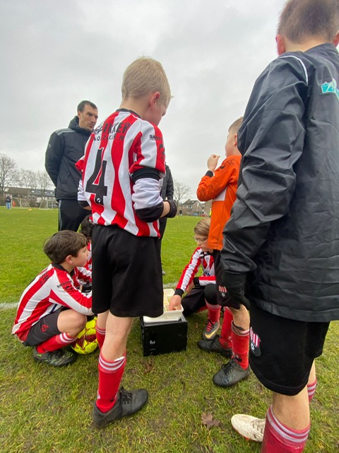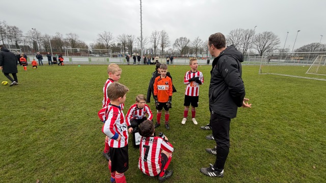 Maar ze gingen stoïcijns door en er volgde een kopie van het eerste doelpunt, 1-2. Zane hielde het achterin dicht en Luc en Jason op de flanken wonnen veel duels. Het was Luuk die vanaf links wilde voorzetten maar via een speler van Beek Vooruit ging hij de goal in, 1-3. Voor rust viel ook nog de 1-4 door goed doorzetten van Luuk, via een sliding kreeg hij de bal bij Ilyas die scoorde. Na het nodige fruit gingen we snel weer verder.