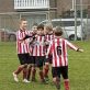 Een laatste vrije trap, allemaal voor de goal en door vele benen haalde bal het doel niet! Hard gewerkt en de 1e overwinning in de Hoofdklasse was een feit! Wat waren ze blij! Volgende week thuis tegen IFC.